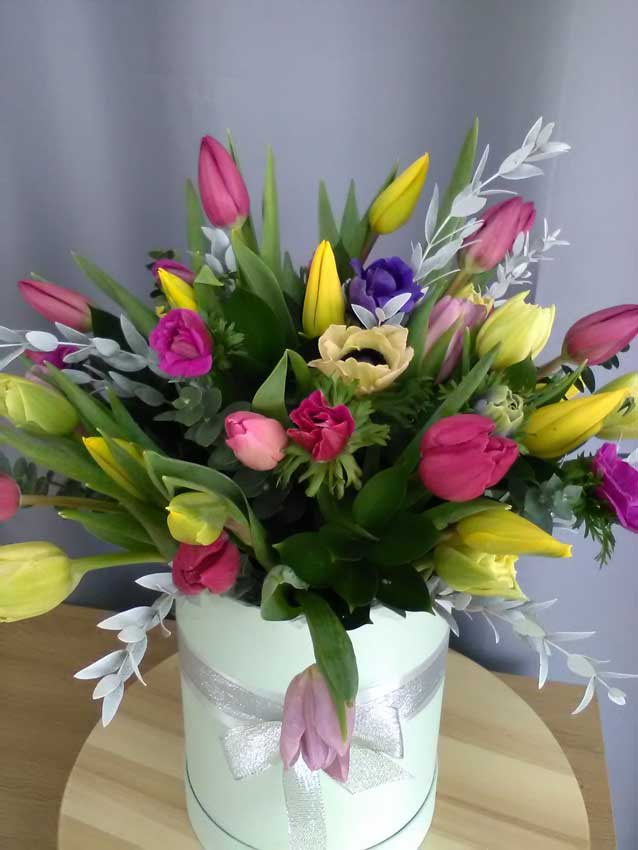 Najnowsze trendy we florystyce obejmują kwiaty w pudełkach. Tego rodzaju kompozycje także znajdziesz w mojej kwiaciarni w Warszawie na Mokotowie.
